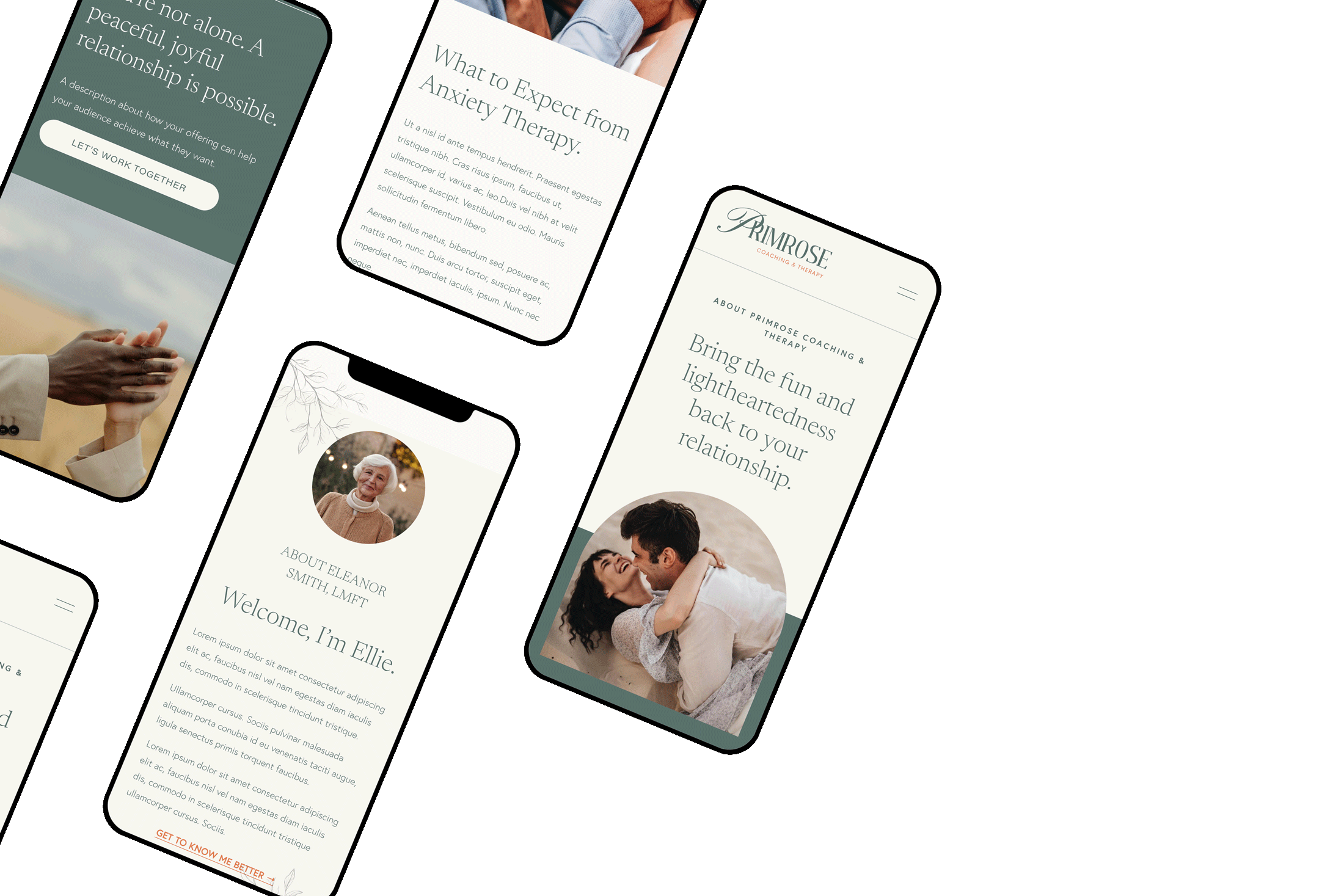 The branding, customization, copy-editing, and site strategy, is by TherapieSEO. The template is from Studio Mesa.